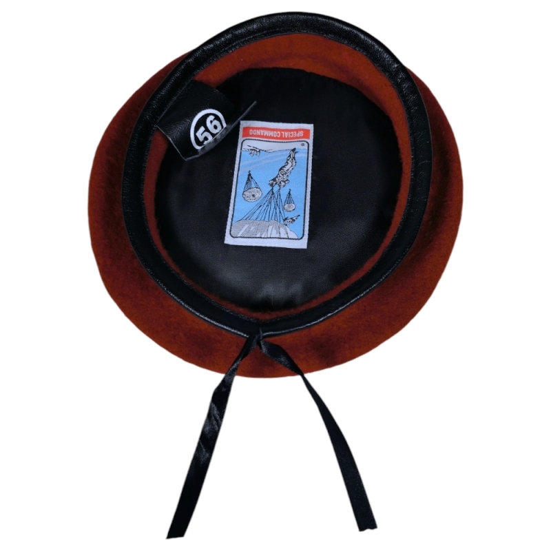 Béret commando rouge “Spécial Commando” — laine, bord cuir, porte-insigne