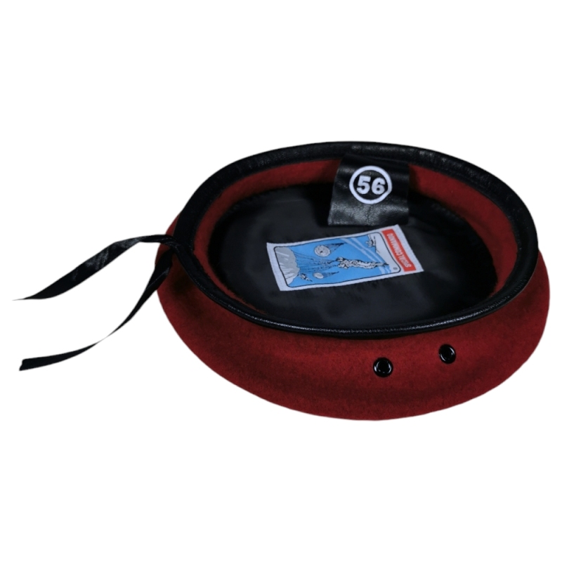 Ce béret commando rouge (style “Spécial Commando”) reprend une construction classique : 100% laine pour la tenue, bord cuir pour une finition propre, et porte-insigne en cuir cousu à droite. Le rouge se voit davantage qu’un béret noir ou bleu : c’est un bon choix pour une tenue de cérémonie, une reconstitution, une association d’anciens, ou un usage “béret rouge militaire / béret rouge parachutiste” selon votre représentation. Le béret est livré sans insigne ni écusson.