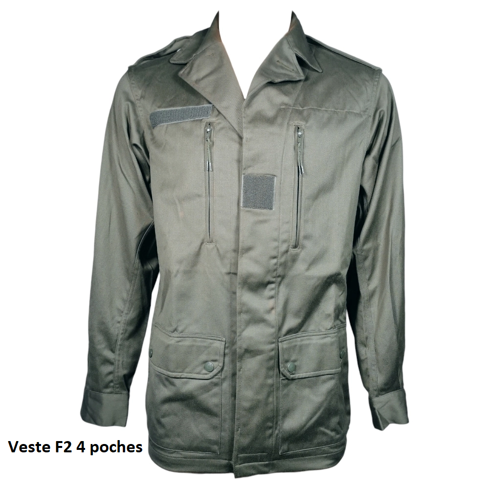 La veste F2 est la veste de combat de l'armée française remplaçant le modèle F1. Elle apporte des modifications en terme de résistance et de protection thermique. Tout d'abord, dans un coloris traditionnel vert, le camouflage Désert Daguet et le camouflage Centre-Europe feront leur apparition dans les années 90. Les spécificités de la veste F2 :