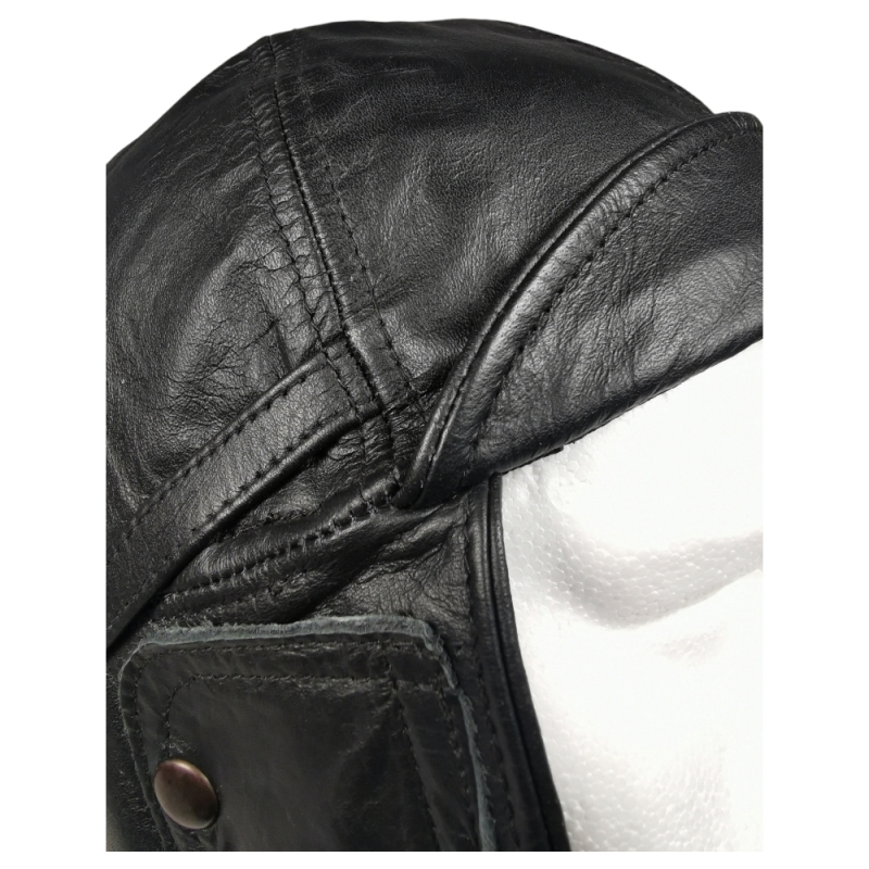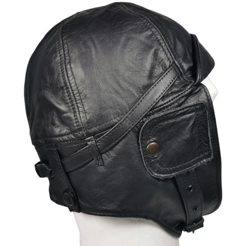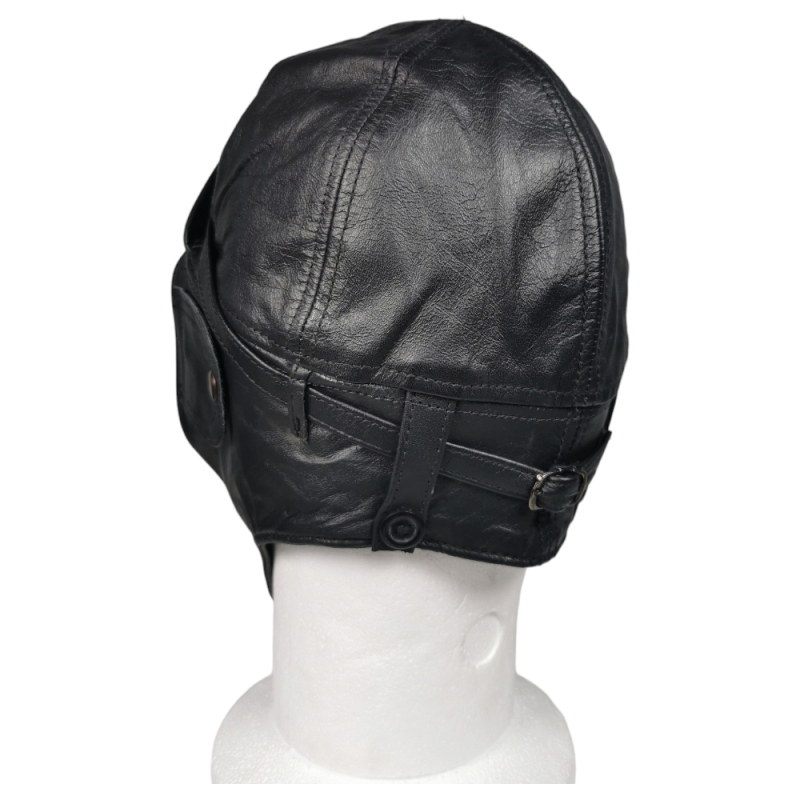 Cuir souple, protège-oreilles, boucle sous le menton et doublure pour le confort. Idéal pour reconstitution, moto rétro ou déco.