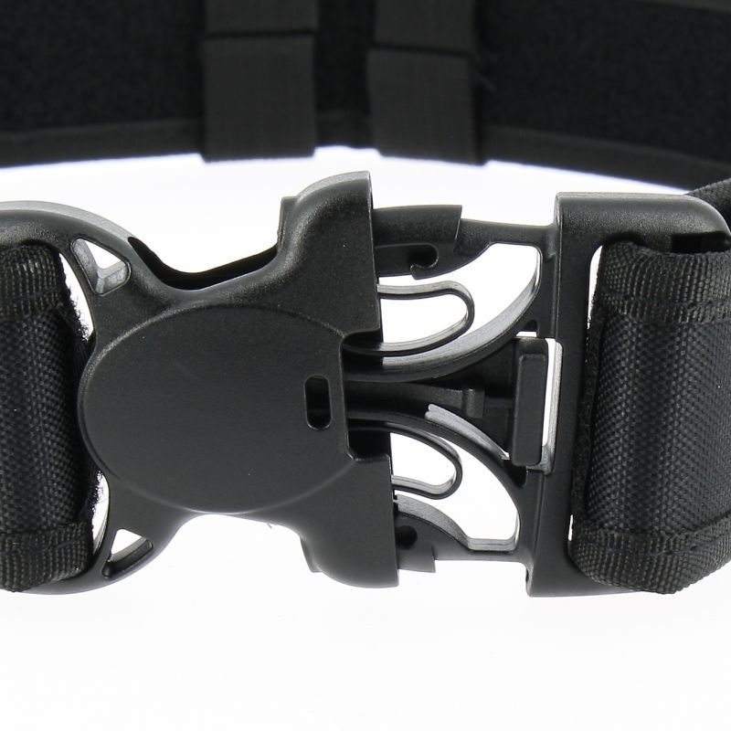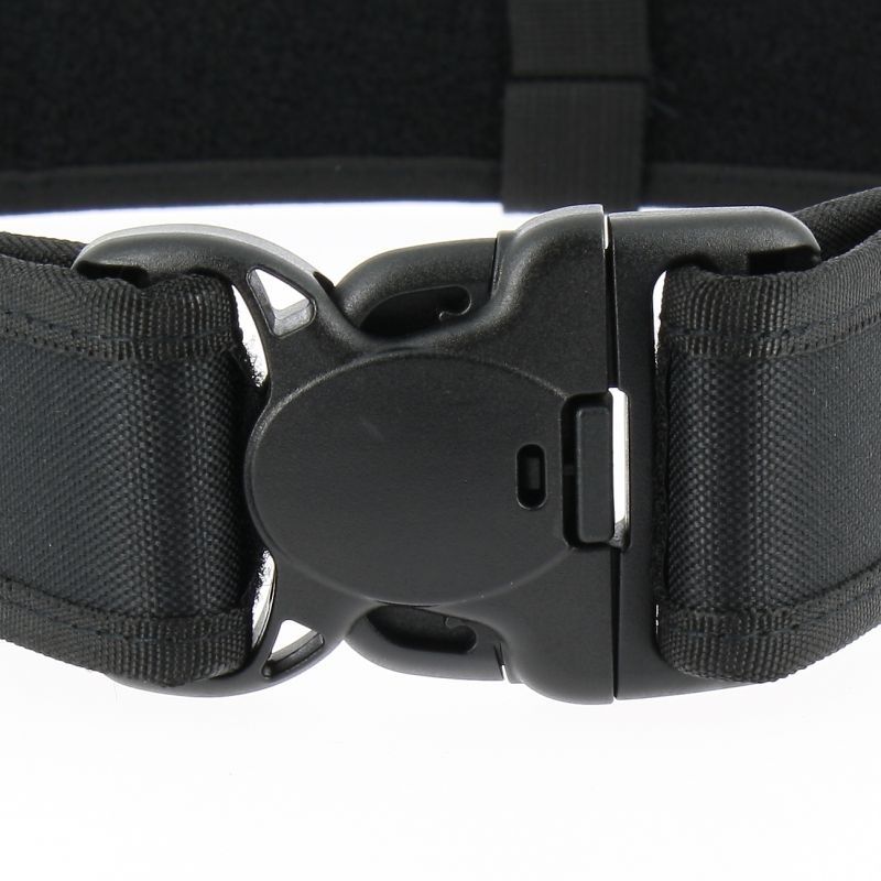 Ceinturon noir 100% Polyester avec rembourrage en mousse EVA (185 g/qm) et boucle sécurisée.
