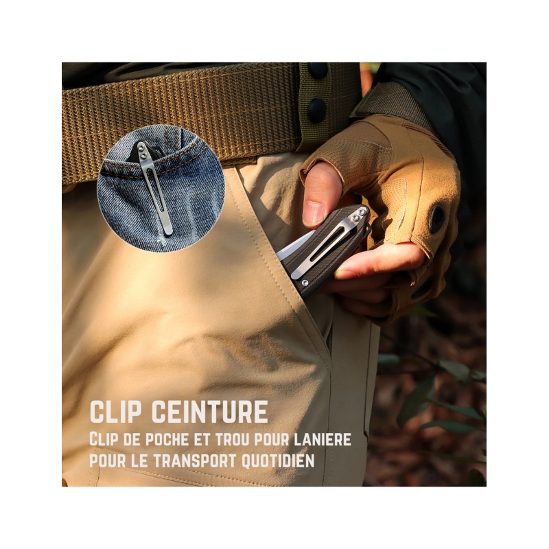 Le REMETTE WILD SPECIES est équipé d'un clip de poche et d'un système de roulements à billes en céramique pour une ouverture fluide, avec un verrouillage button lock fiable.