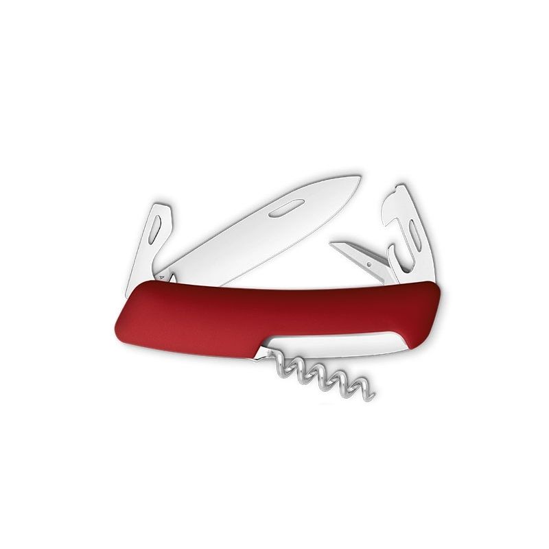 11 fonctions : Lame de 75mm avec blocage de sécurité, Alêne coupante avec poinçon, Aiguille à chas, Décapsuleur avec un tournevis n°3 et un plioir à fil, Ouvre-boîtes avec tournevis n°1, Tire-bouchon qualité sommelier, Pincette.