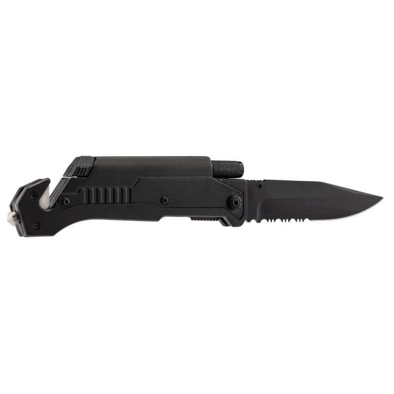 Manche avec coupe-ceinture, lampe led, allume-feu, pointe brise vitre et clip