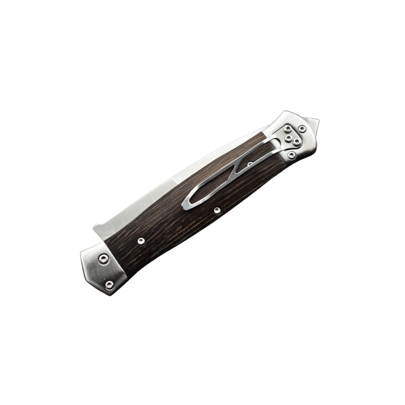 Doté d'une robuste lame en acier 3CR13 de 98mm, il garantit une coupe précise et durable. Son manche en bois finement travaillé, de 132mm, offre une prise en main confortable et un style raffiné, agrémenté d'un brise-vitre pratique.