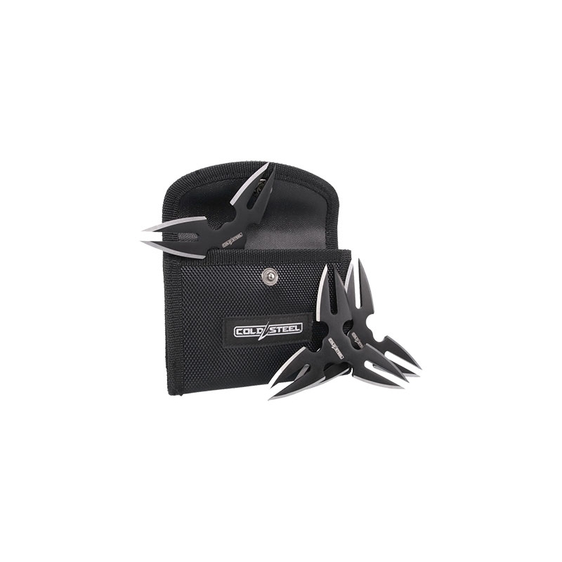 Lot de 3 étoiles de lancer 3 branches, livrées avec étui COLD STEEL, conçues pour la précision et la durabilité.