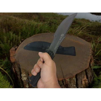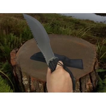 La poignée mesure 13.50 cm, offrant une prise en main confortable et sécurisée. La taille totale du couteau est de 32.90 cm, faisant du K25 32694N un outil compact mais puissant, idéal pour les opérations tactiques et les activités de survie.