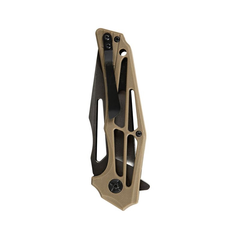 Le couteau KARACAL, de ARES God of War, présente un design moderne avec son manche squelettisé qui lui apporte une allure tactique et légère.