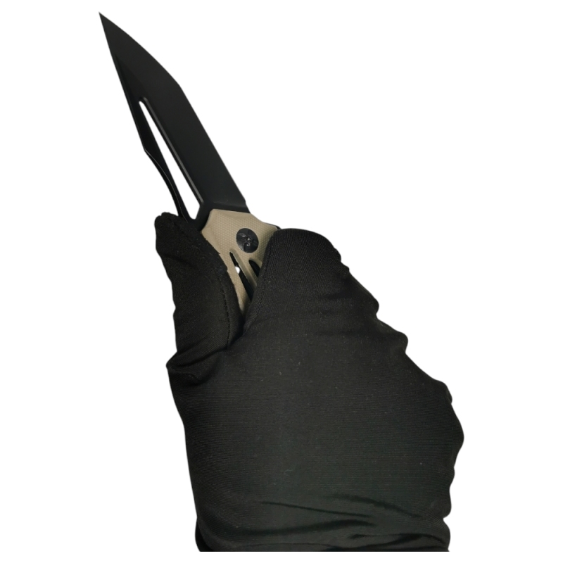 Le manche ajouré du couteau KARACAL de ARES permet d'alléger le poids du couteau tout en offrant une prise en main confortable et sûre.