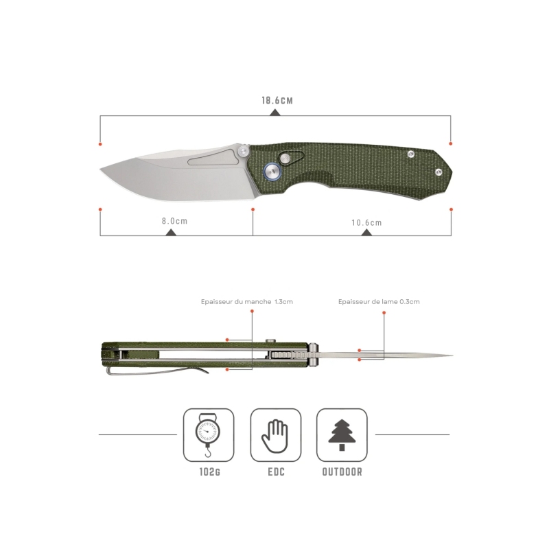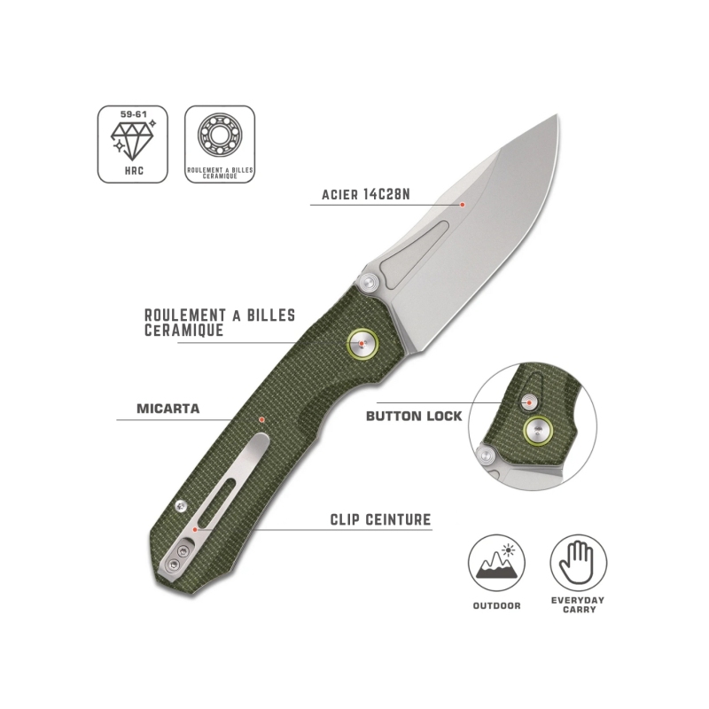 Doté d'une lame en acier 440C, il garantit une excellente résistance à la corrosion et une durabilité inégalée. Le manche en aluminium anodisé noir offre une prise en main confortable et élégante.