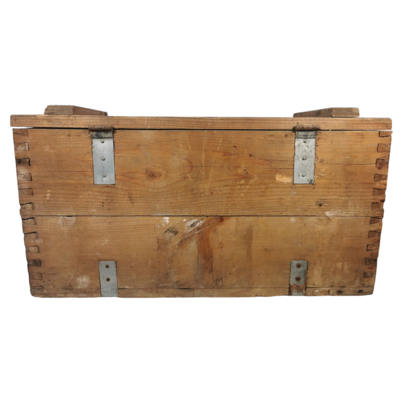 En plus de sa fonction initiale de stockage de munitions, cette grande caisse en bois militaire est parfaite pour un usage domestique ou décoratif. Utilisez-la pour ranger des outils, des accessoires de jardinage, ou comme pièce maîtresse dans une décoration intérieure au style industriel ou vintage. Son design robuste et son histoire militaire ajoutent une touche unique à n'importe quel espace.