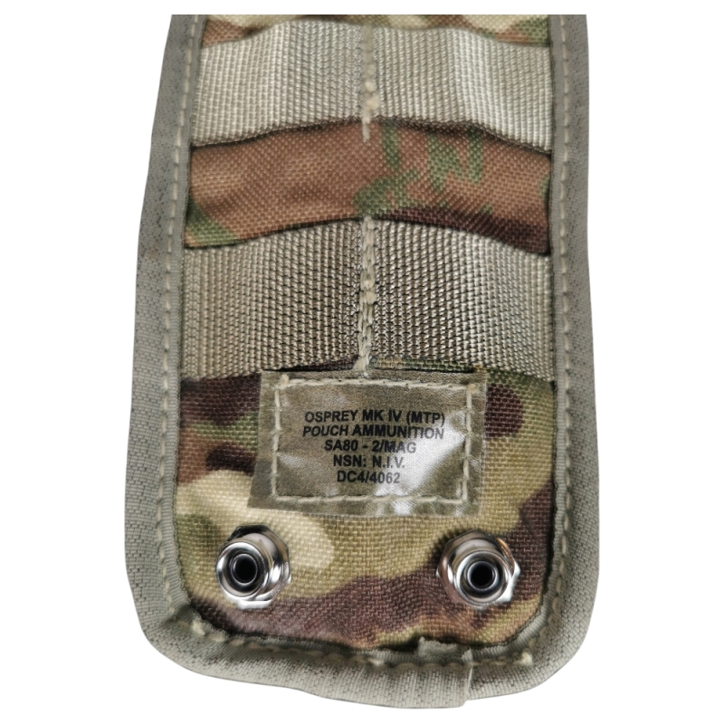 Le porte-chargeur OSPREY MK IV, d'origine de l'armée britannique, est conçu pour le port d'un chargeur 5.56. Équipé de passants MOLLE, le porte-chargeur présente un camouflage MTP (Multi-Terrain Pattern).