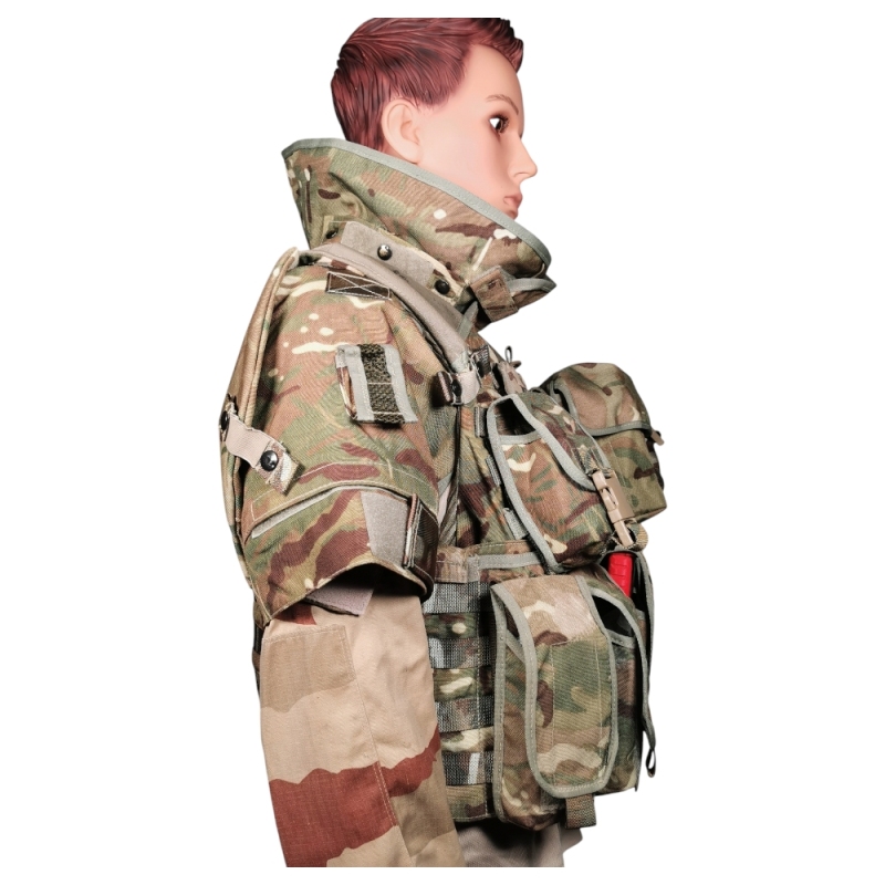 Livré avec 1 panneau molle abdominal, 2 poches latérales pour inserts balistique, 1 cummerband pour inserts balistiques, ceinture abdominale, protection épaules, protection cou et protection bras, 3 porte chargeur double et 2 porte chargeurs simple (AK, AR15, G36...), 1 grande poche molle (pour 8 munitions de lance grenade), 1 petite poche molle (pour grenade fumigène), 1 poche administrative molle