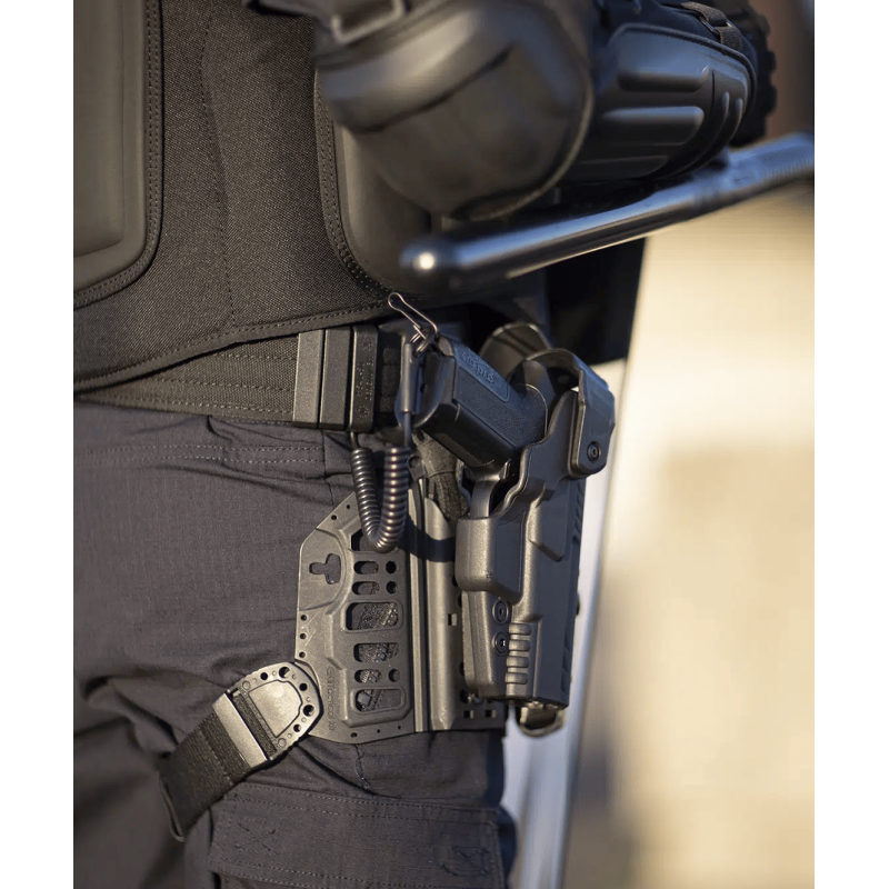 À la recherche d'une solution simple et efficace pour porter votre pistolet, quelle que soit sa taille ? Le Holster Tactical de cuisse est là pour vous. Adapté à une large sélection de pistolets, du plus compact au plus imposant, et même équipés d'accessoires comme une lampe ou un laser, ce holster polyvalent sait se faire indispensable. Facilement transformable, il passe de holster de cuisse à holster de ceinture en un clin d'œil, sans les sangles de maintien.