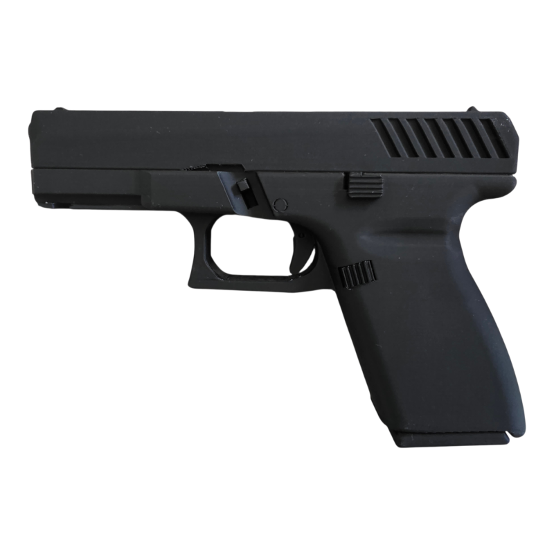 Ce pistolet d'entraînement est parfait pour la décoration, le cosplay, ou les exercices de formation. Imprimé en 3D avec du plastique recyclable (PLA), il est à la fois écologique et léger. Ce modèle fixe ne possède aucun élément mobile, garantissant ainsi une utilisation en toute sécurité.