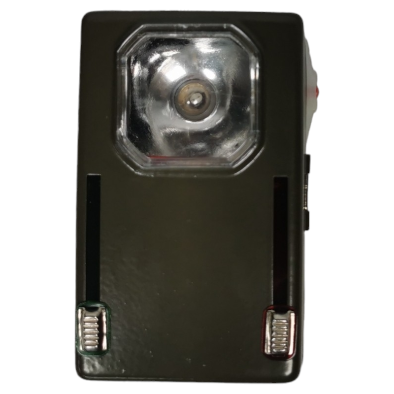 Authentique lampe de poche de l'armée polonaise. Les leviers sur la face avant permettent de changer l'éclairage en blanc, vert ou rouge.