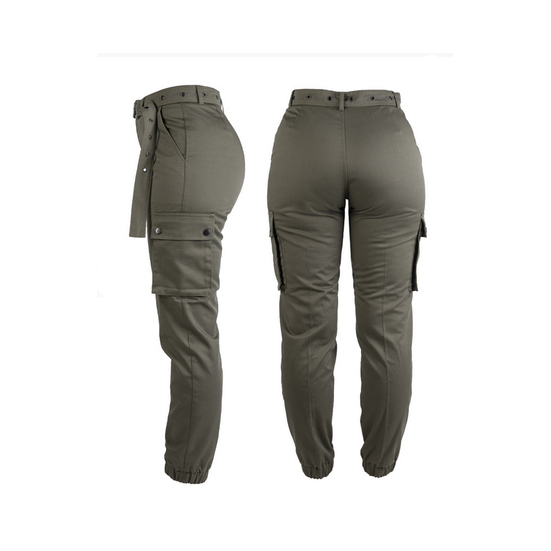 Pantalon cargo militaire F2 Femme — Taille haute, bas élastiqués