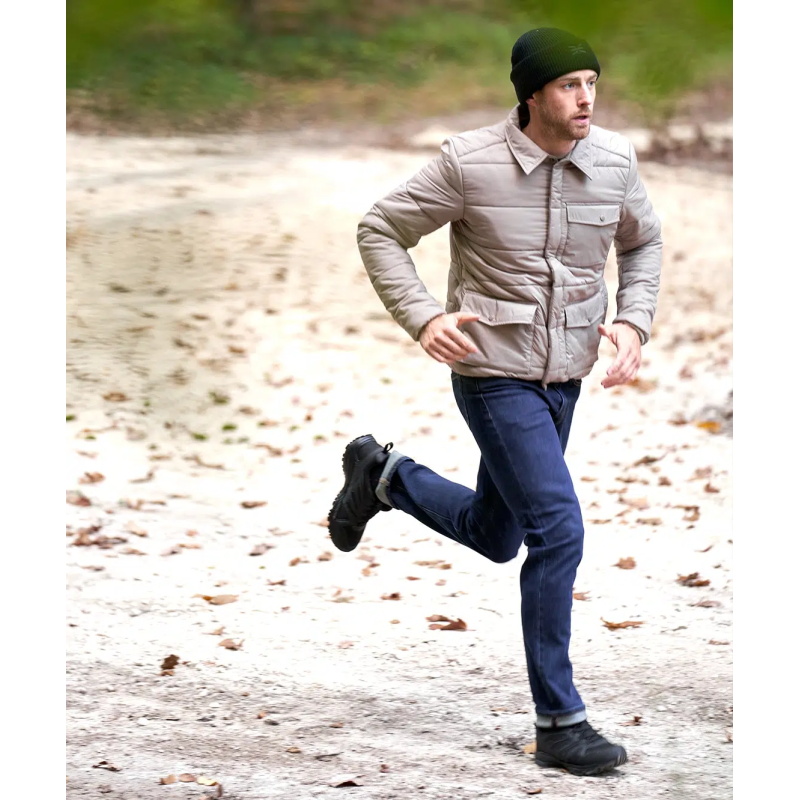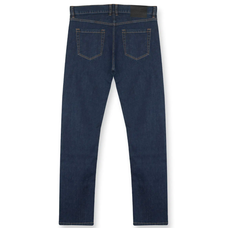 Son tissu selvedge plus résistant, combiné au denim stretch (98 % coton / 2 % élasthanne), encaisse l’usage intensif sans sacrifier le confort. Les passants arrière doublés et renforcés sécurisent le port d’une ceinture ou d’un équipement discret.