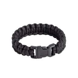 Bracelet paracorde noir déployable (≈3 m), fermeture clip, 15 g (M). Tailles S/M/L. Accessoire EDC/bivouac pour avoir toujours une corde sous la main. Non escalade.