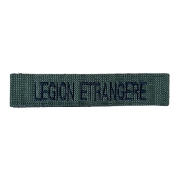 Fabriquée en France, elle arbore fièrement l'inscription "LÉGION ÉTRANGERE" brodée sur un fond vert. Avec ses dimensions pratiques de 12 x 2,5 cm, elle se fixe facilement grâce à un système de velcro, assurant un maintien sûr et fiable.