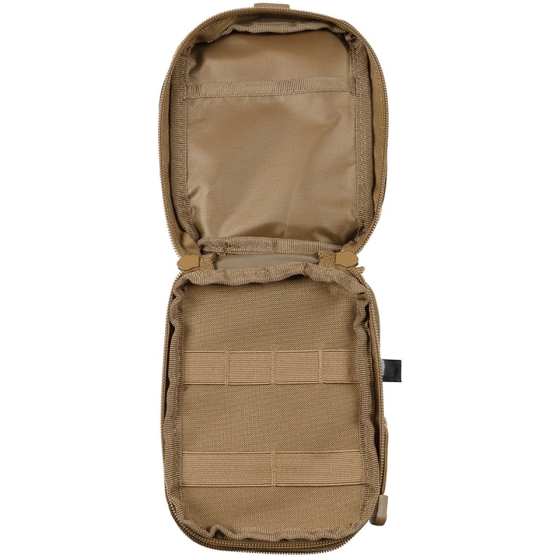• Pochette EDC MOLLE MFH — vue intérieure, poche zippée et compartiment coyote