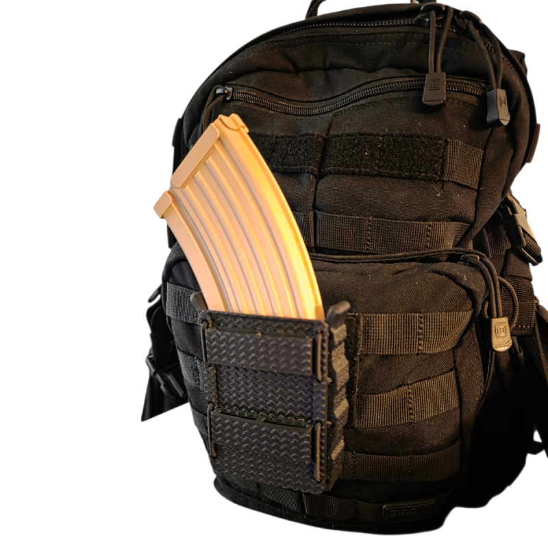 Le porte-chargeur FLEX-RS vise un objectif simple : tenir le chargeur sans rabat et rester rapide à manipuler, même avec des gants de combat. Sa forme flexible épouse le chargeur pour une rétention stable, tout en gardant une extraction fluide.