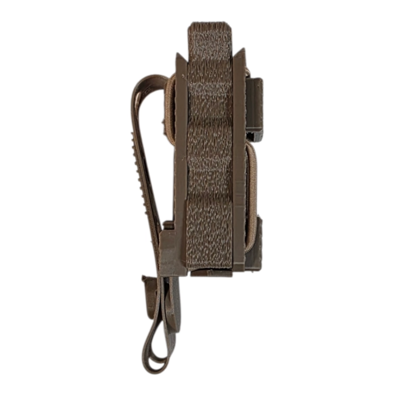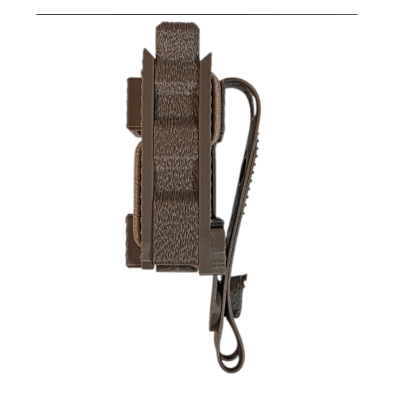 • porte-chargeur 9mm molle coyote marron, vue de profil, pochette fine maintien chargeur