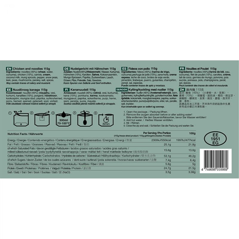 Avec une durée de conservation optimale, les nouilles au poulet de Tactical Foodpack sont le choix idéal pour toute mission, voyage ou aventure.
