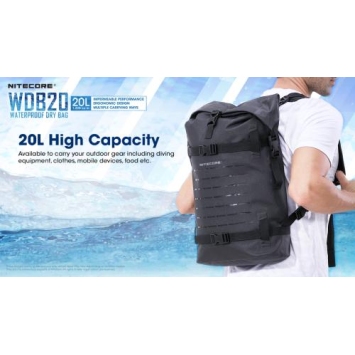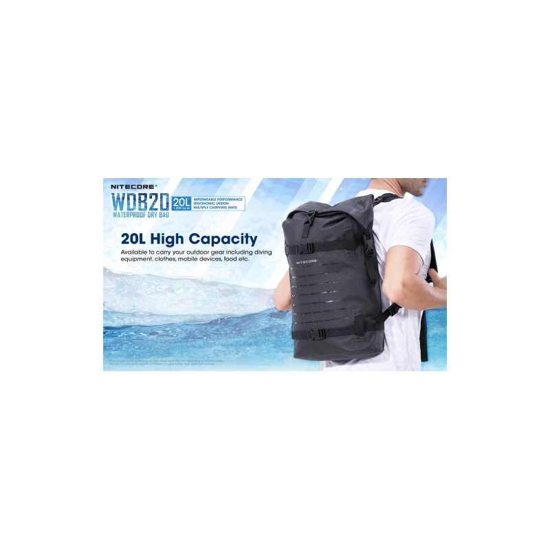 Le Sac à dos étanche NITECORE WDB20, spécialement conçu pour le trek, les sports nautiques et autres activités outdoor comme le snowboard et le bivouac. Ce sac à dos polyvalent est fabriqué en TPU 600D imperméable, assurant une étanchéité fiable en toutes circonstances. Avec une capacité de 20L, il offre un espace suffisant pour transporter vos essentiels tout en restant léger et compact.