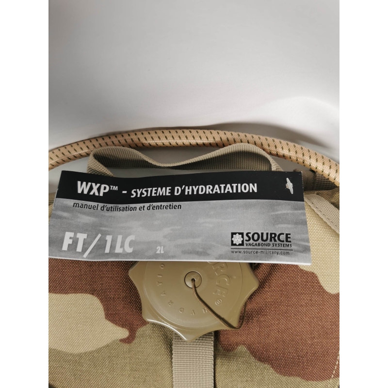 Poche à eau SOURCE d'une contenance de 2L avec sac à dos militaire camouflage CE ou Désert