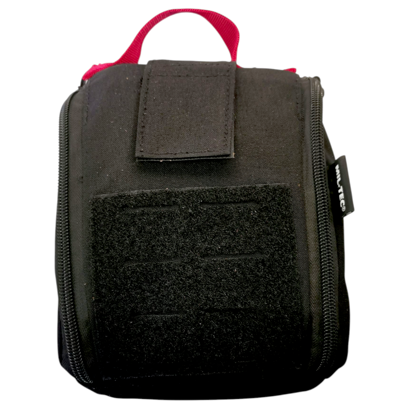 Ces éléments seront fournis dans une trousse IFAK compacte et robuste. Équipée d'un système Molle pour une fixation facile (gilet tactique, ceinture, sac MOLLE), elle offre une organisation claire des fournitures médicales essentielles, permettant une intervention rapide lors des urgences. Le panneau Molle est fixé par velcro sur la poche afin de pouvoir détacher celle ci rapidement en cas de nécessité.