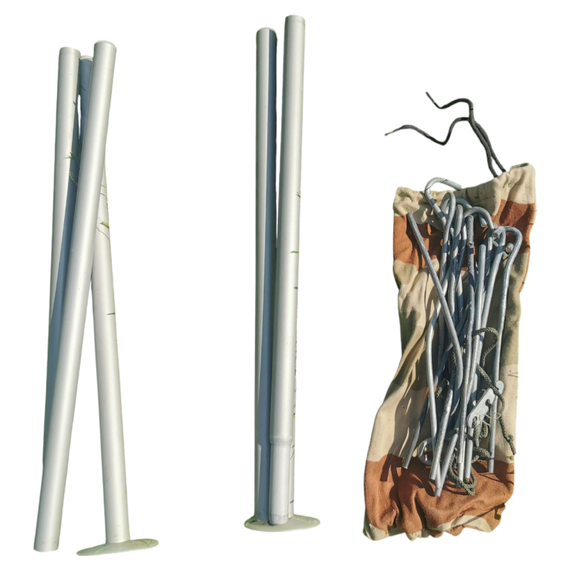 Cet article étant d'occasion les kits de fixation fournis peuvent être incomplets (1 ou 2 sardines ou cordelettes manquantes).